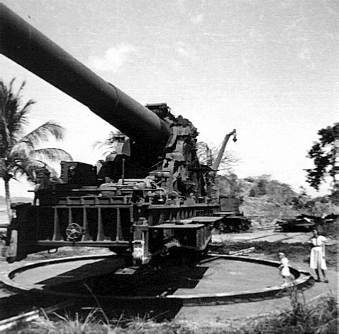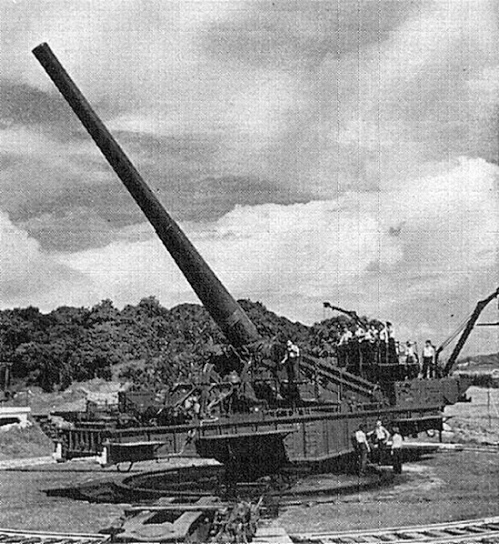 A dismounted and emplaced 14-inch M1920 railroad gun which could move from the Atlantic coast to the Pacific coast by railroad if needed.