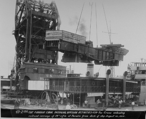 Unloading of 14" Rail Gun assembly at Paraiso in Panama on Aug.18,1928