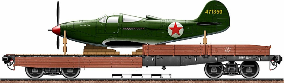 Pictured Above and Below: ALSIB-transferred Lend-Lease P-39 Airacobra partially dismantled at Krasnoyarsk for further rail transport.